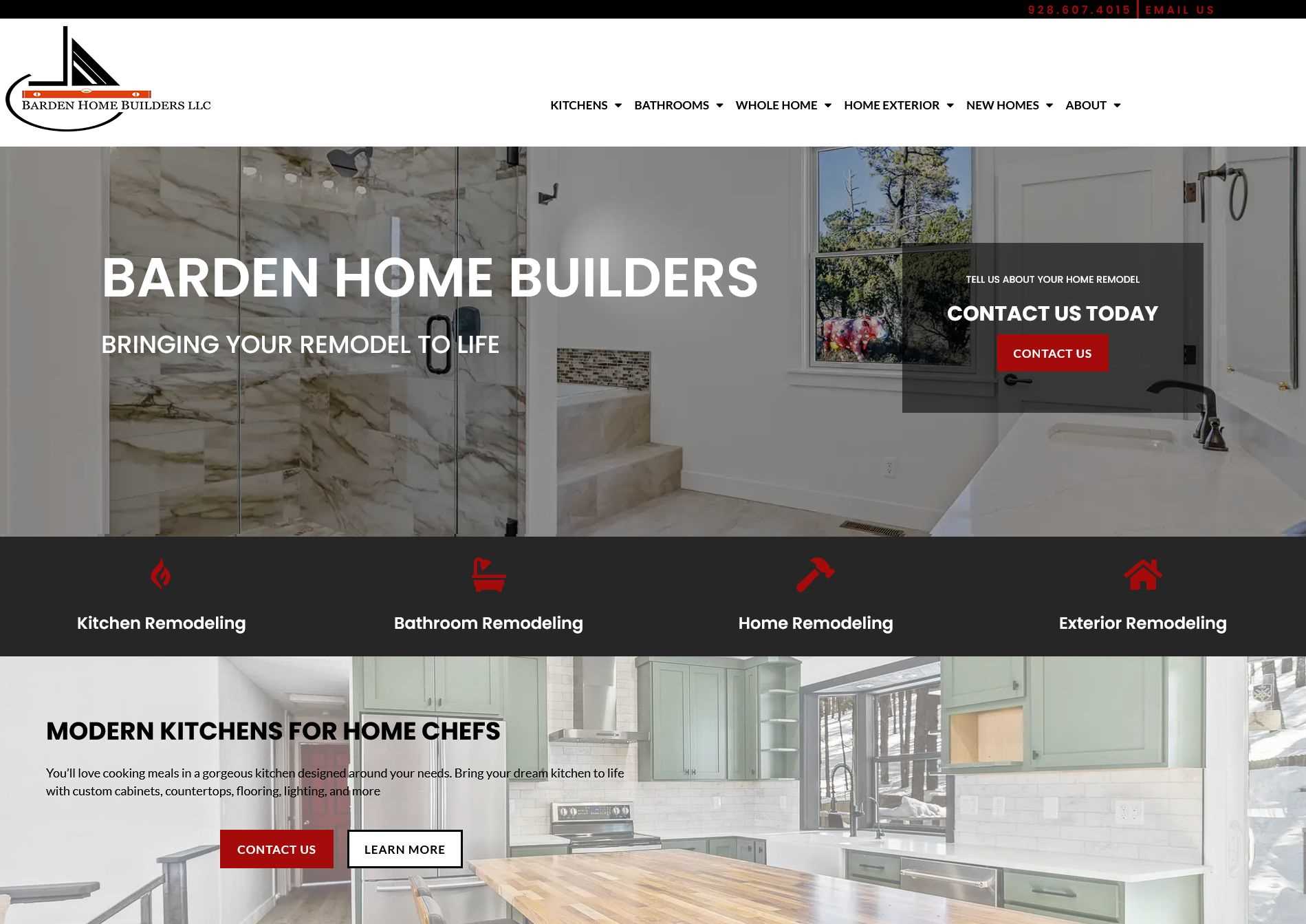 Barden Home Builders asked to refresh their site with new image, updated portfolios and navigation that better represents their stunning remodels. We rebuilt the site with web marketing in mind, including menus that emphasize specific keywords. Photo rich pages emphasize their work, while new organization enhances usability. Calls to action are always available creating leads on every page.